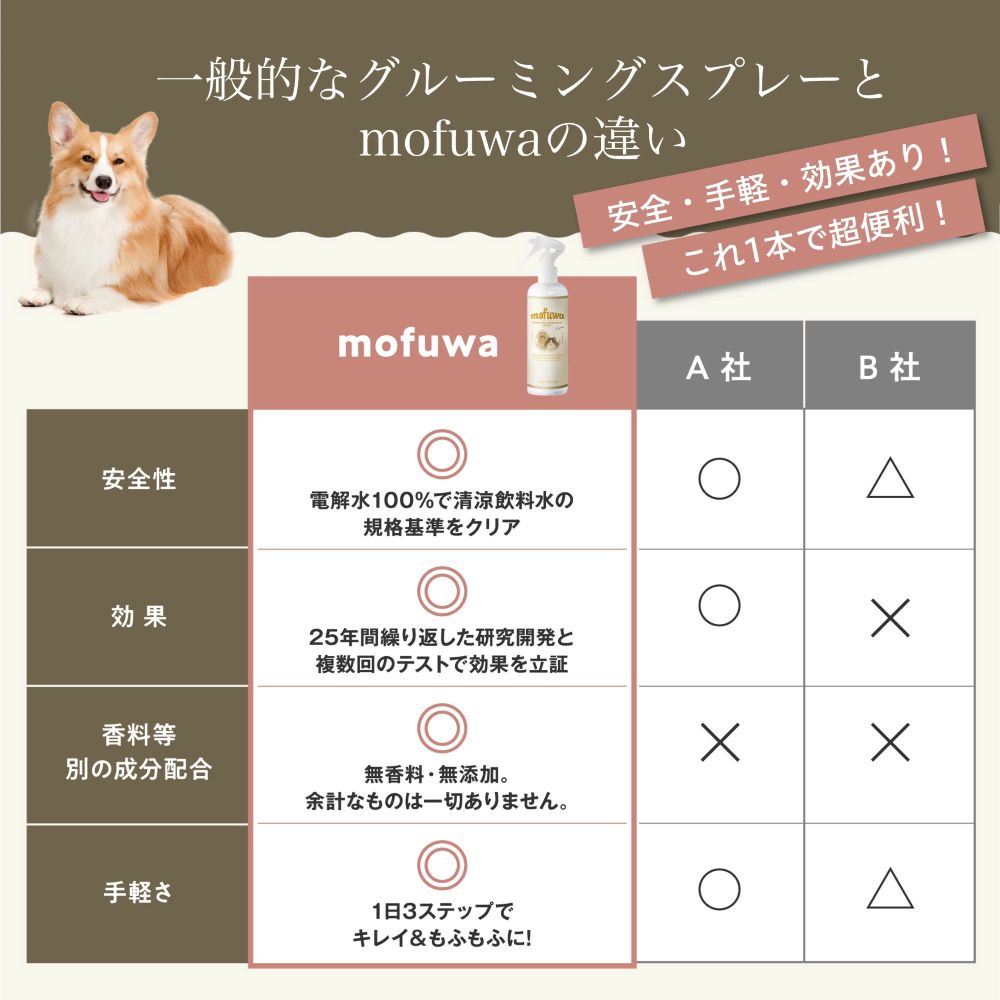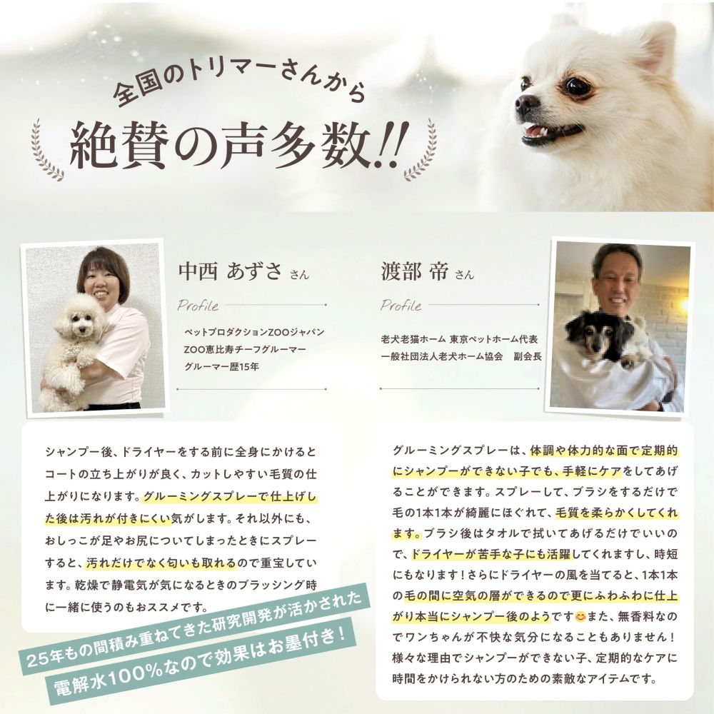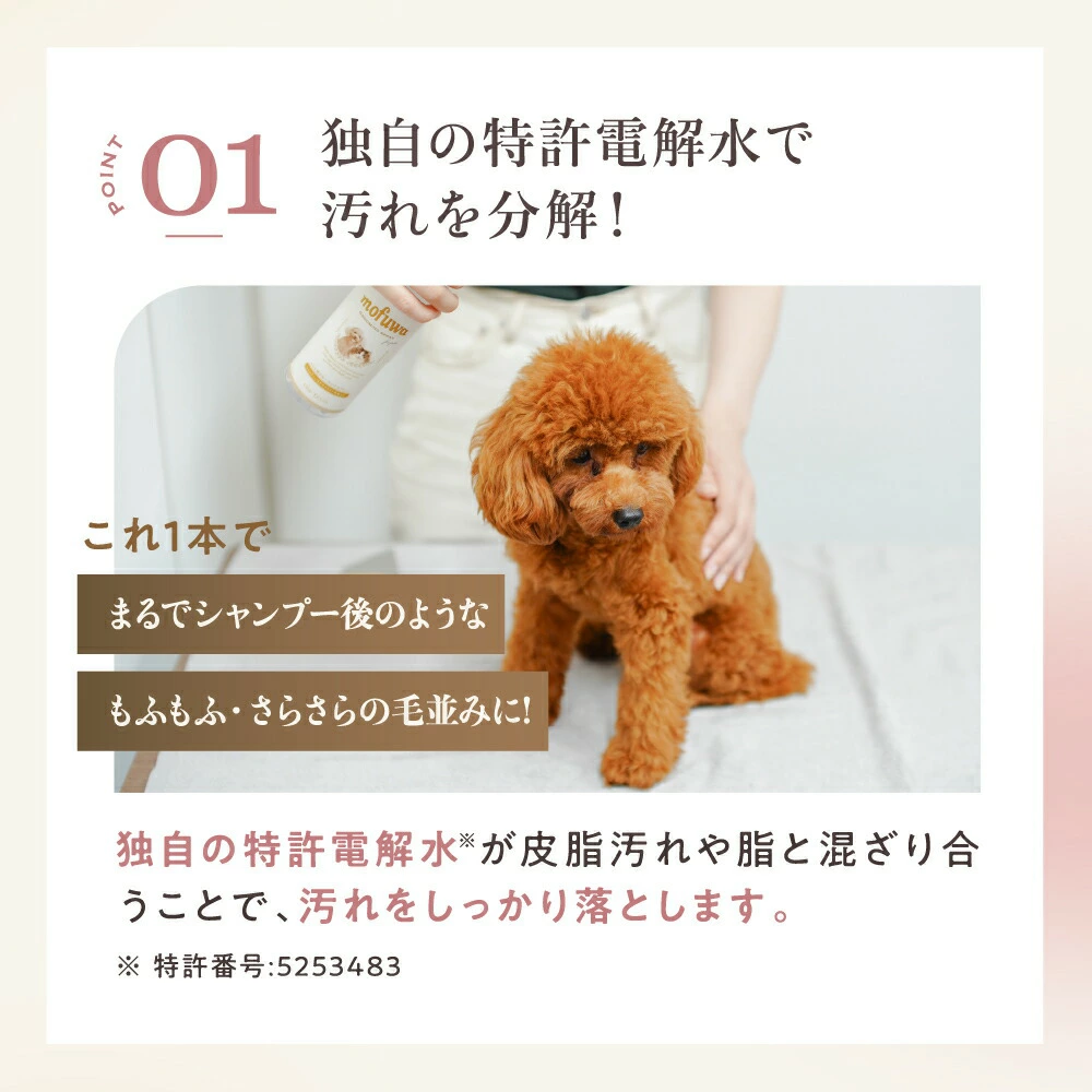 スプレー&ブラッシングだけで汚れが落ちて毛並みさらふわになるブラッシングスプレー。 香料やアルコール不使用で安心。犬や猫のシャンプー代わりとしてもお使い頂けます。