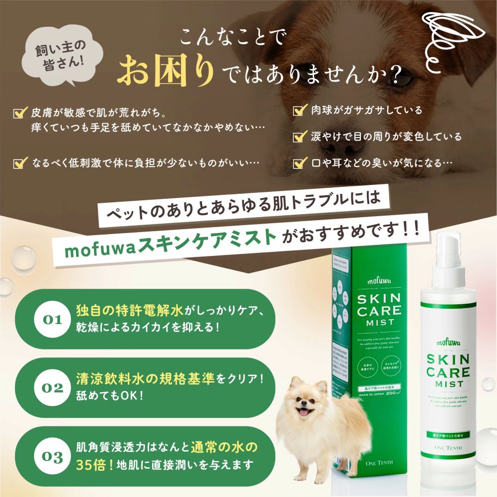 \かゆみや乾燥、お口や目などのあらゆるケアに使えるスキンケアスプレー/香料・着色料・アルコール不使用の無添加処方で舐めても安心なスキンケアスプレーです。