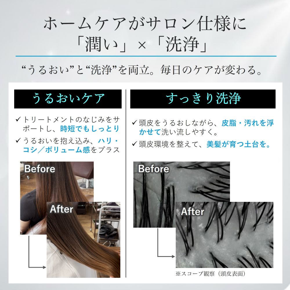 ナノサイズを超えた極小の粒子が、硬くなったキューティクルを優しく開き、水分の通り道を確保。髪の深部まで潤いを届け、サロン帰りのような「柔らかさ」と「まとまり」を自宅で再現します。