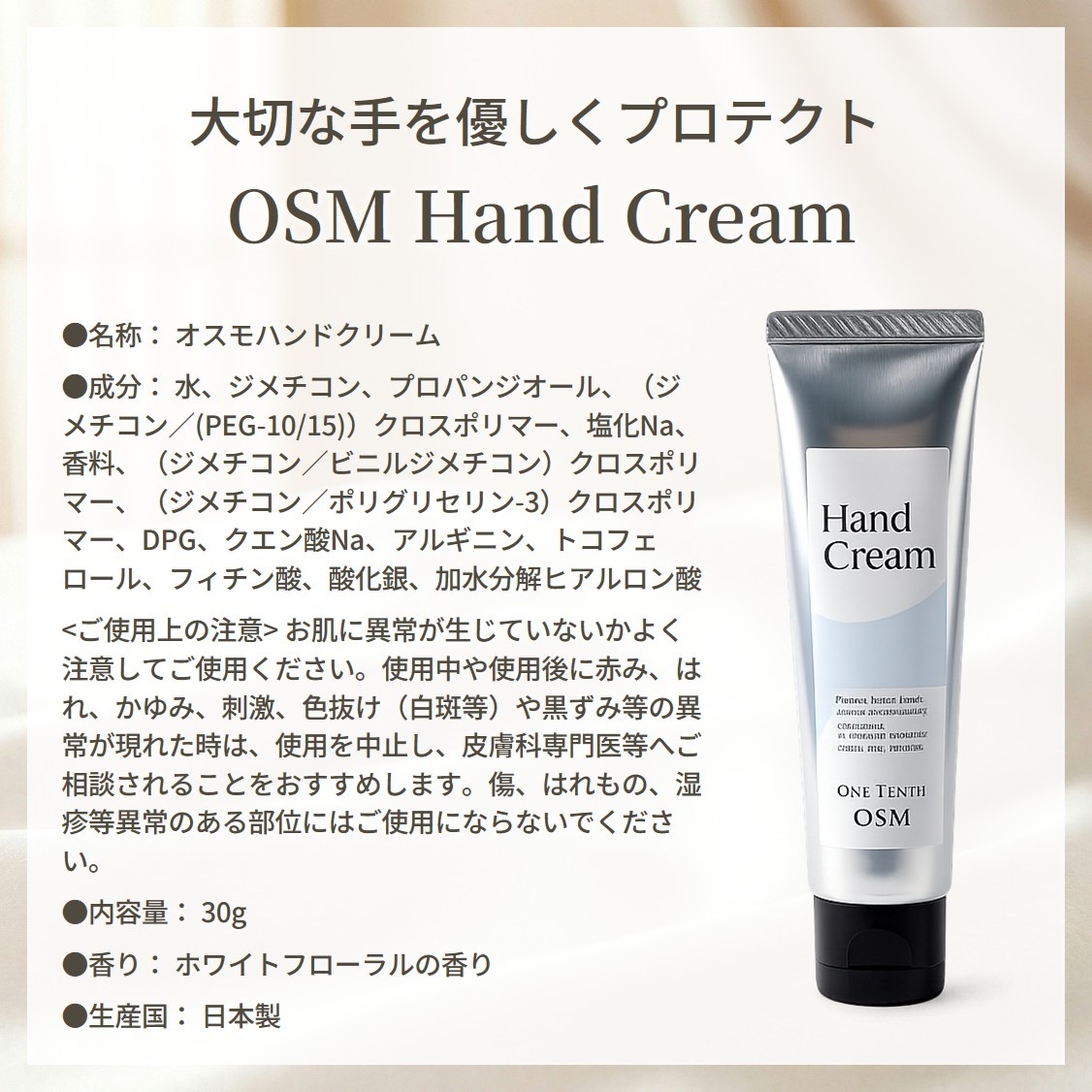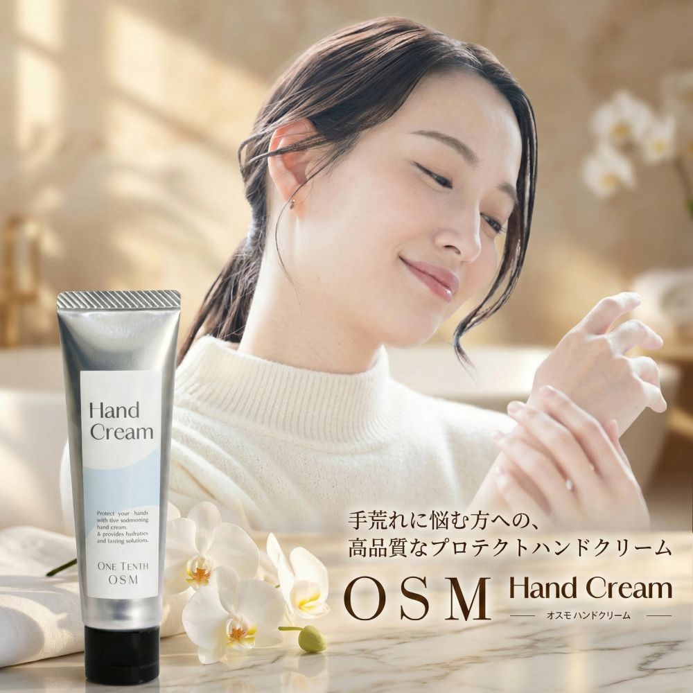 OSM Hand Creamは、繰り返す水仕事や外部刺激から大切な手を「守り、潤す」ために開発されたプロテクトクリームです。